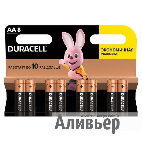 Батарейки КОМПЛЕКТ 8 шт., DURACELL Basic, AA (LR06, 15А), алкалиновые, пальчиковые, блистер - описание:
