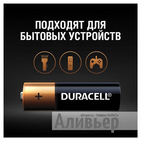 Алкалиновые батарейки DURACELL размера AA увеличенной емкости идеально подходят для приборов с высоким потреблением энергии, таких как механизированные игрушки, фонарики, портативные игровые консоли, пульты дистанционного управления и т.д.