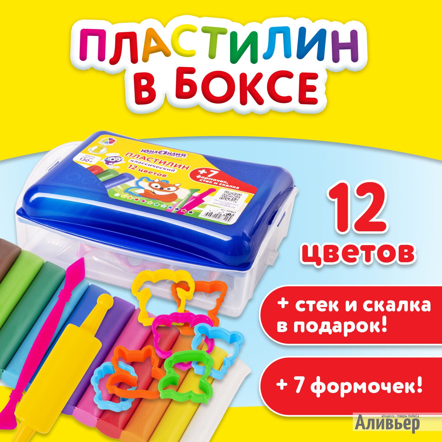Пластилин в боксе ЮНЛАНДИЯ "ЮНЛАНДИК В ЗООПАРКЕ", 12 цветов, 130 г, скалка, стек, 7 формочек, 105863 - особенности: